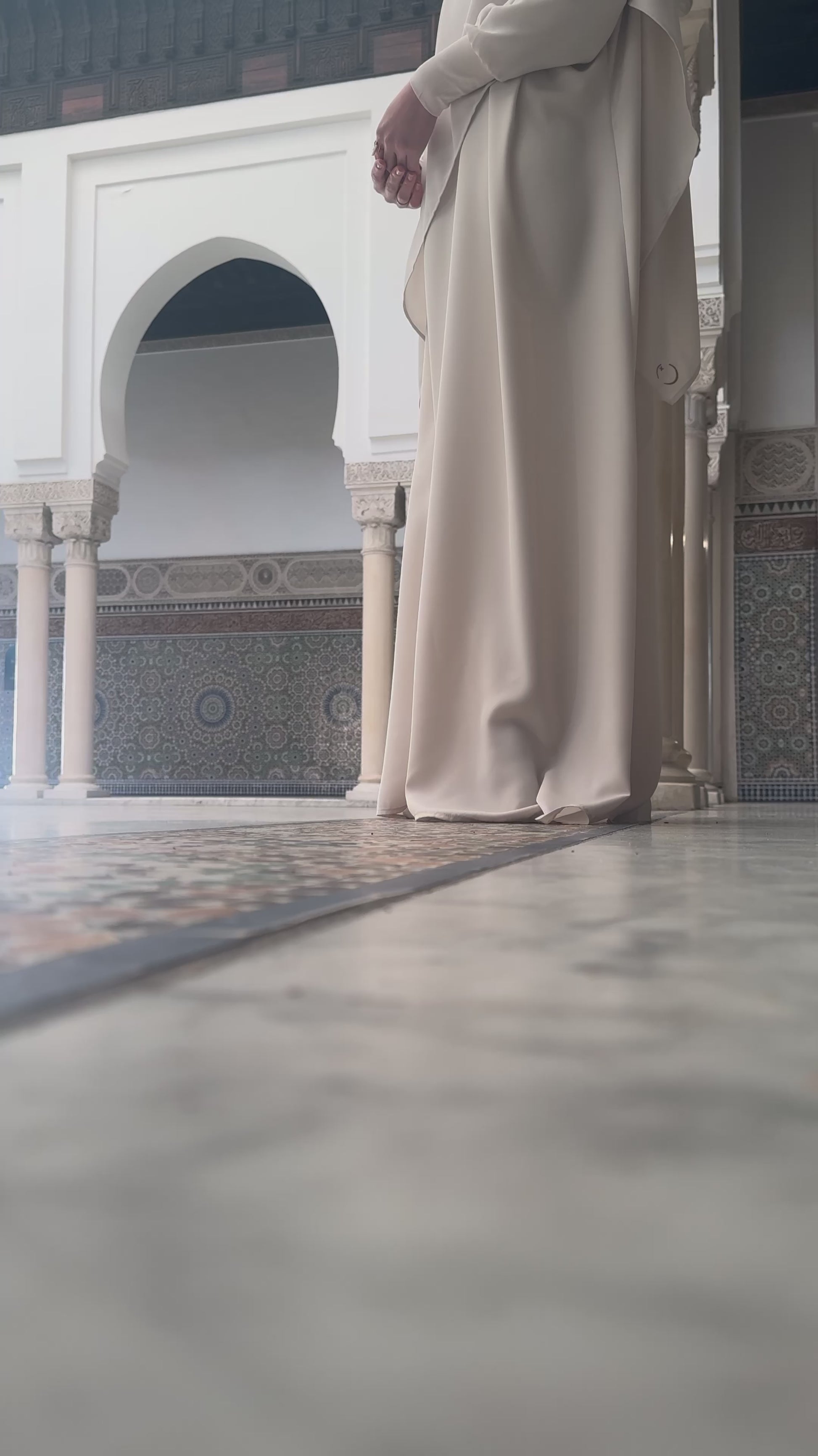 Le long hijeb est pensé pour ne pas bouger lors de la prière, afin de garantir son maintien au niveau du dos tout en élégance, nous avons prévu une ouverture pour le passage du bras.