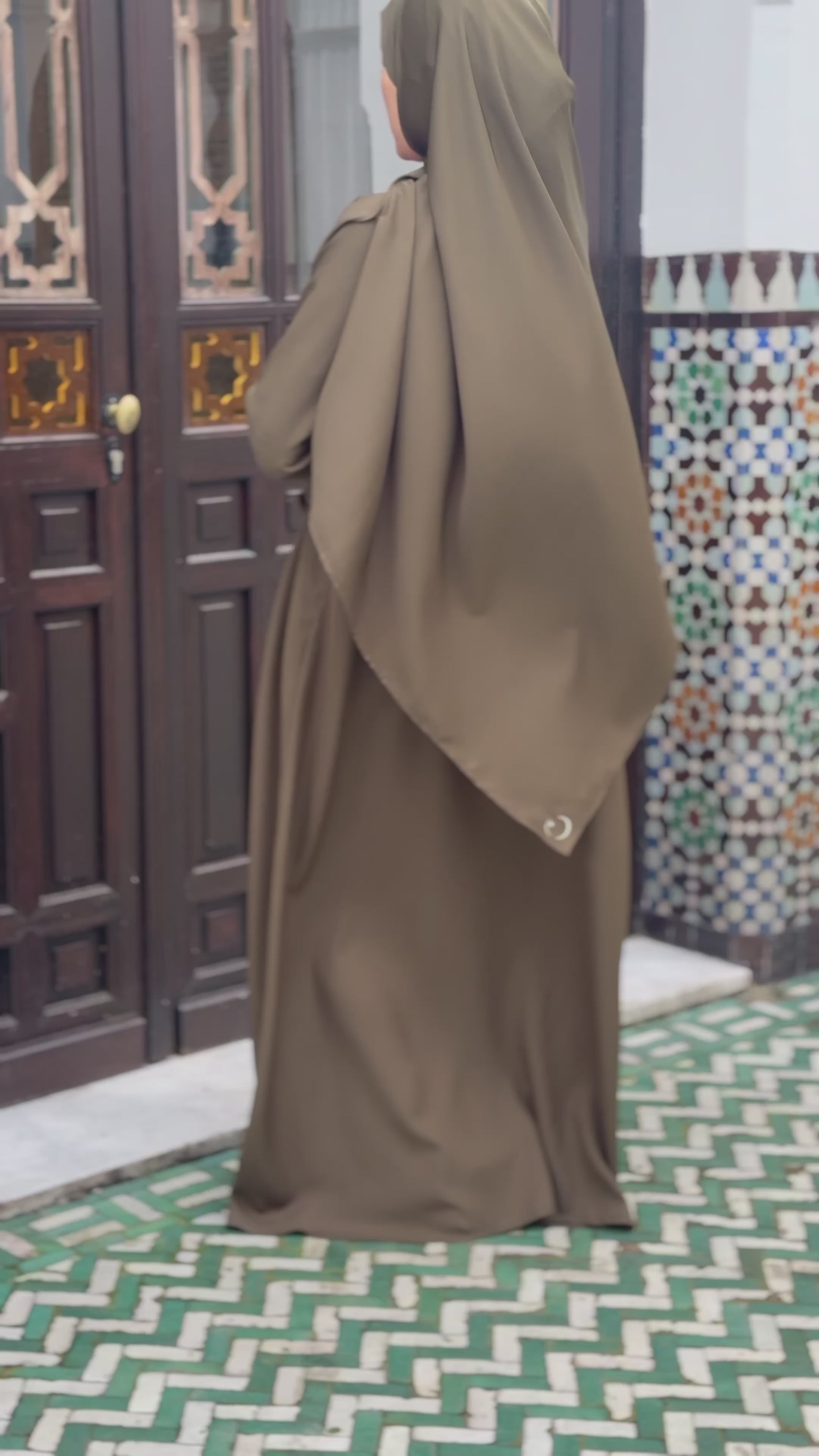Le long hijeb est pensé pour ne pas bouger lors de la prière, afin de garantir son maintien au niveau du dos tout en élégance, nous avons prévu une ouverture pour le passage du bras.
